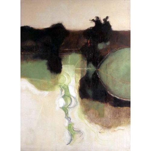 A FRAMED OIL ON CANVAS<BR><BR>Depicting an abstract landscape, bears signature "John O`Connor," 39"h x 29"w