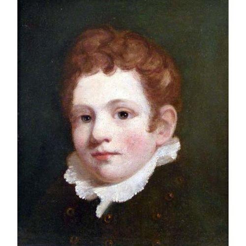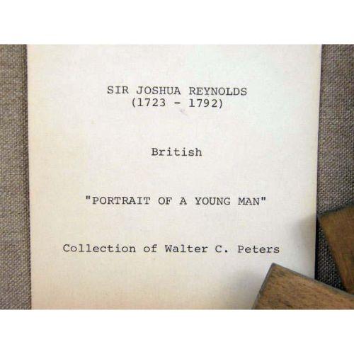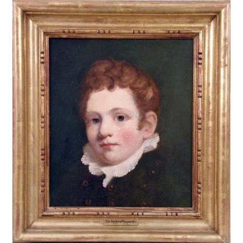 A FRAMED OIL ON CANVAS<BR><BR>British, depicting a portrait of a young boy, bears front plaque inscribed, Sir Joshua Reynolds, 1723-1792, crackling and losses, 13 1/2"h x 11 1/2"w