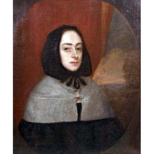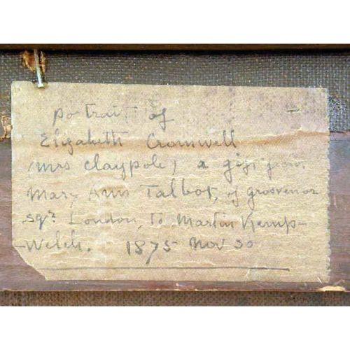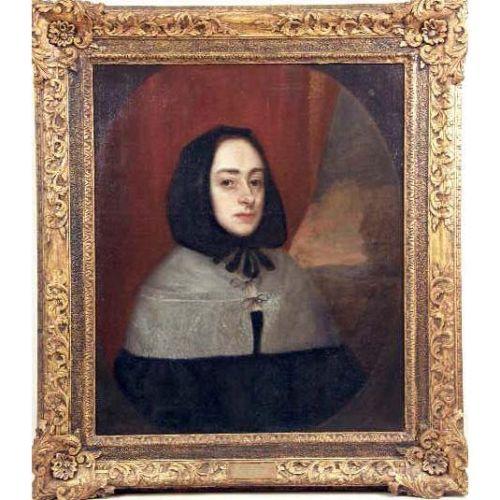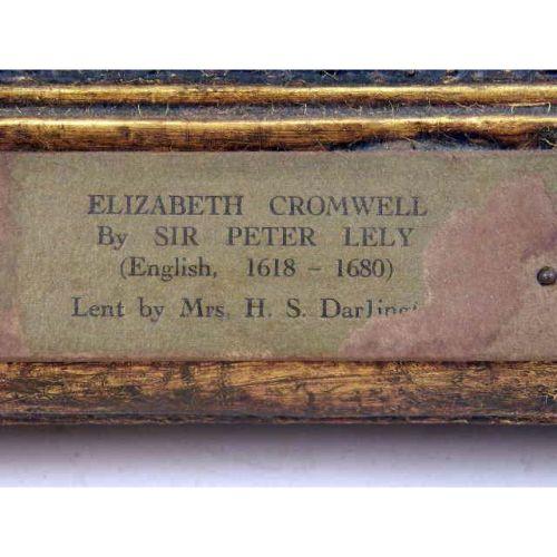 A FRAMED OIL ON CANVAS<BR><BR>British, depicting a portrait of a woman, with front plaque inscribed "Elizabeth Cromwell by Sir Peter Lely (English, 1618-1680) lent by Mrs. H.S. Darling". Repairs, cracquelure, and losses. 27"h x 23"w