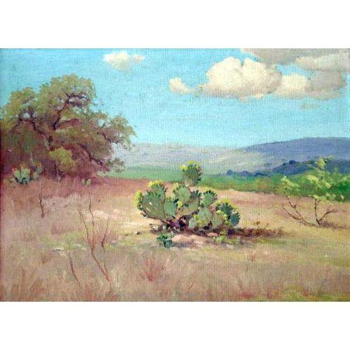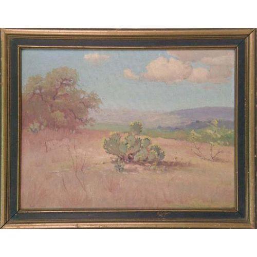A FRAMED OIL ON CANVAS<BR><BR>Bears signature "Robert Wood," depicting a landscape with a cactus, 11 3/4"h x 15 3/4"w
