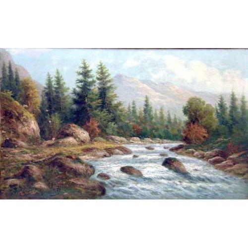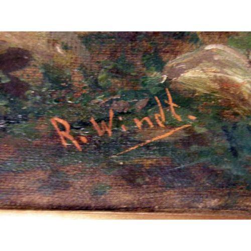 A FRAMED OIL ON CANVAS<BR><BR>Depicting a river scene with rapids, bears signature "R. Windt," 19-1/2"h x 32"w