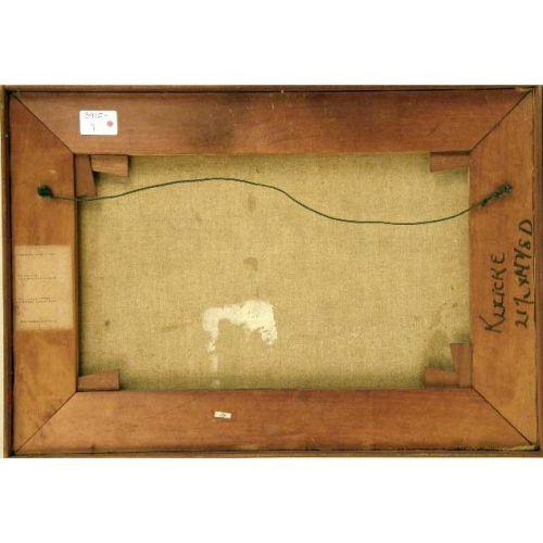 A FRAMED OIL ON CANVAS<BR><BR>Depicting a landscape with a house, bears signature l.l. illegibly, losses, 15"h x 22"w