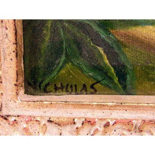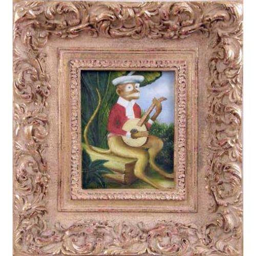A FRAMED OIL ON CANVAS<BR><BR>Depicting a monkey playing a lute, bears signature l.l. Nicholas, 9-1/4"h x 7-1/4"w