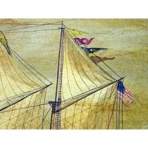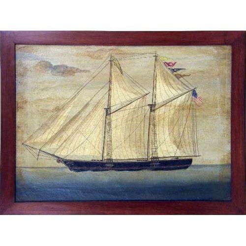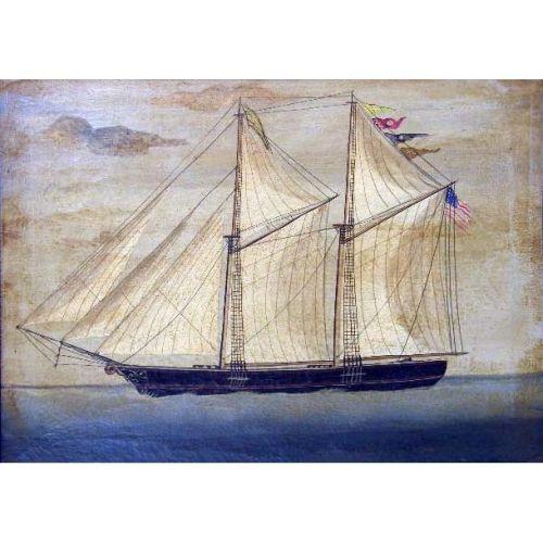 A FRAMED OIL ON CANVAS<BR><BR>Depicting an American schooner. Some wear, craquelure, and repairs, 15-1/2"h x 20-1/2"w