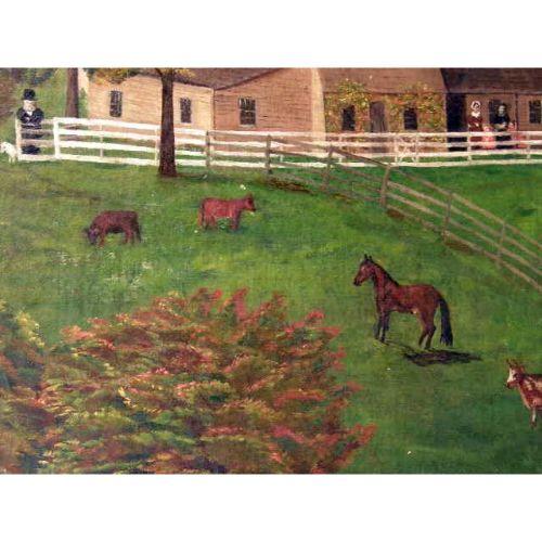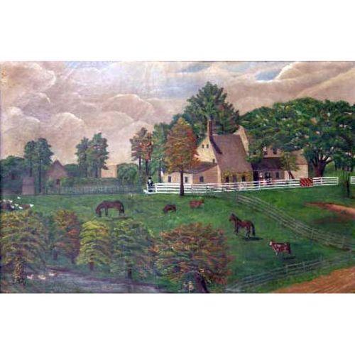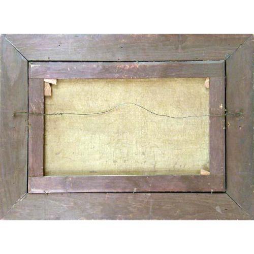 A FRAMED OIL ON CANVAS<BR><BR>Depicting a barnyard scene, craquelure, losses, 15-1/4"h x 23-1/4"w