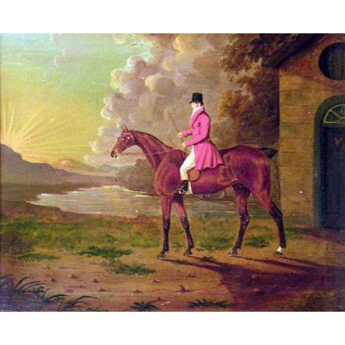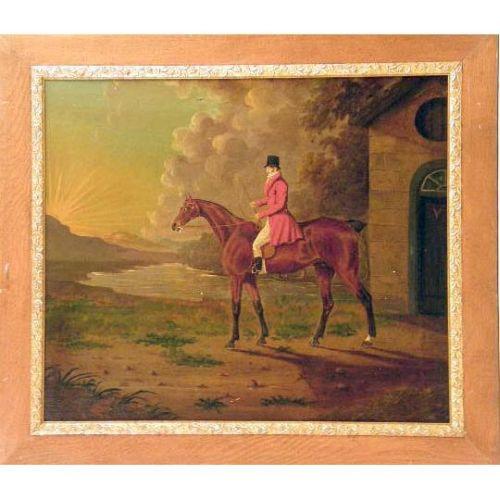A FRAMED OIL ON CANVAS<BR><BR>English, of an equestrian scene, being a gentleman on horseback, 21"h x 25"w