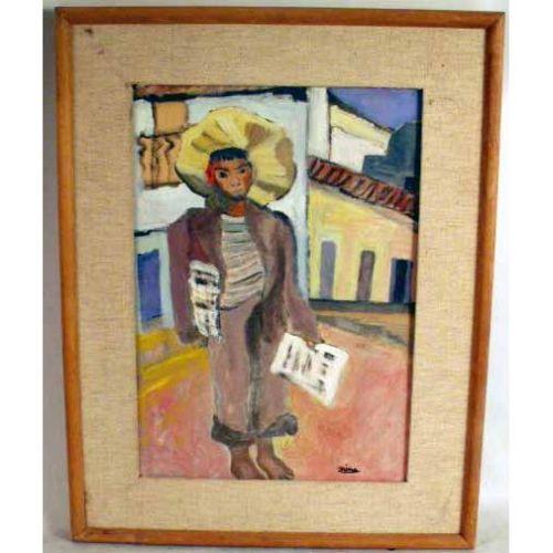 A FRAMED OIL ON CANVAS<BR><BR>Depicting a Mexican or Spanish boy, bears signature l.r. Mina (Malvezzi de Medici) 19 1/4"h x 13 3/4"w