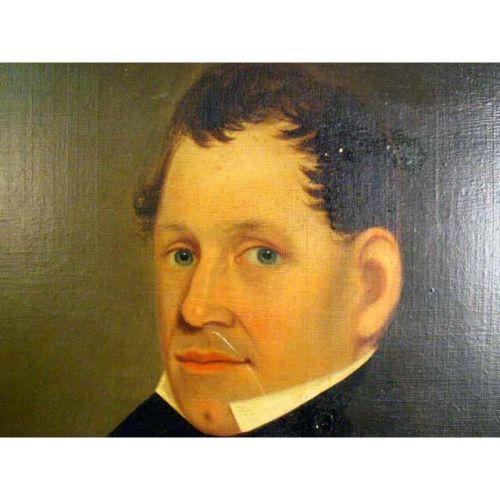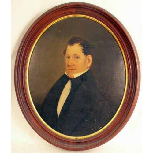 A FRAMED OIL ON CANVAS<BR><BR>American school, oval portrait of a gentleman. Re-lined, some repairs and surface scratches. 26 1/4"h x 21 1/4"w.