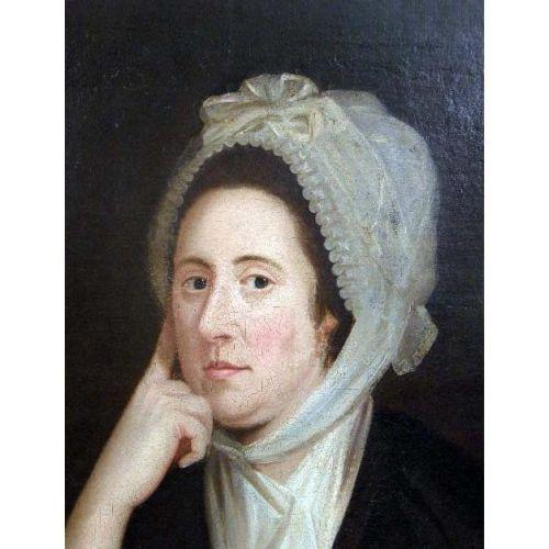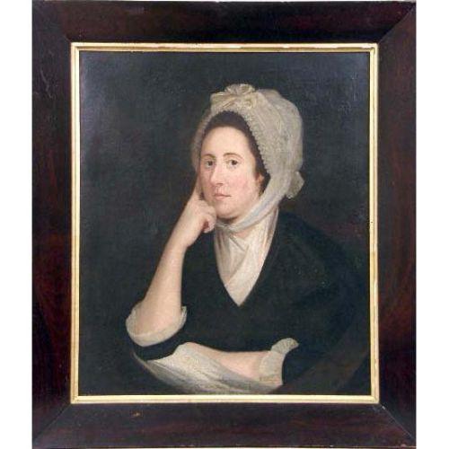 A FRAMED OIL ON CANVAS<BR><BR>Portrait of a woman with a white cap, 28"h x 24"w