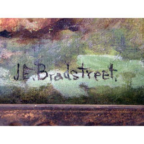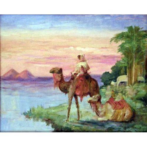 A FRAMED OIL ON CANVAS<BR><BR>Of a landscape with an Arabian man on a camel, signed J. E. Bradstreet (Josephine Elizabeth Wyman Bradstreet, American 1859-1920), 19-1/2"l x 23-1/2"w