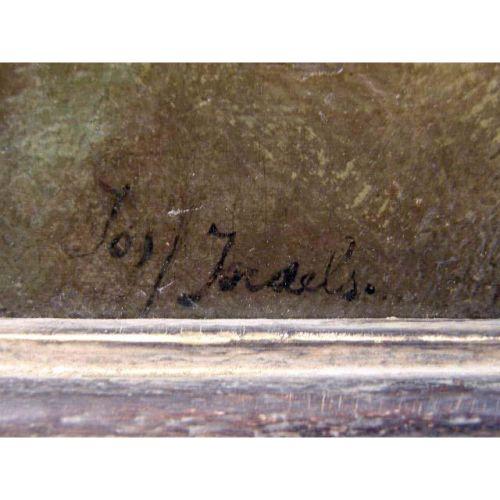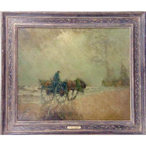 A FRAMED OIL ON CANVAS<BR><BR>Titled "On the Beach," bears signature Josef Israels, (Dutch 1824-1911), 24"h x 29-1/2"w