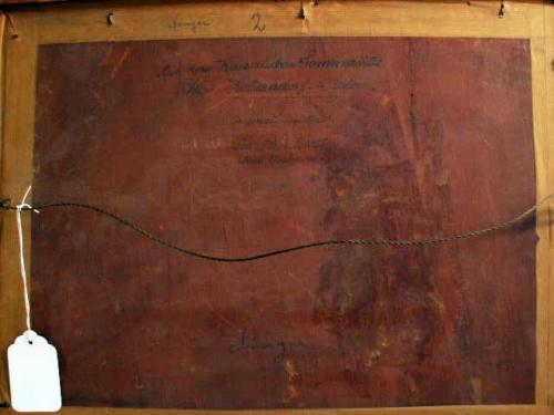 Titled "The Drawing Room/Aus dem Kaiserlichen Sommersitz Schloss Hetzendorf in Wein", bears signature ul Lea Reinhart (Austrian, 1877-1970), the verso bears ink inscription with title and artist`s name. Losses to gilt frame. 13 3/4"h x 18 1/4"w.