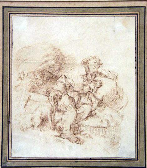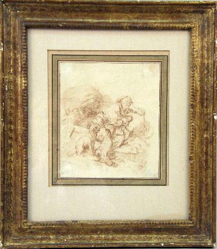 Unsigned, depicting a man and dog. 7"h x 6"w