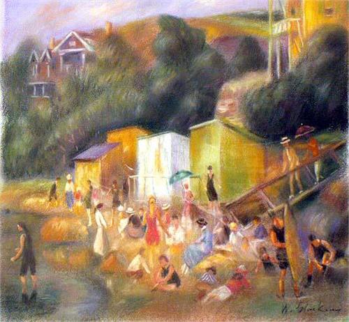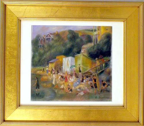 Depicting figures at the beach, bears signature lr W. (William James) Glackens (American, 1870-1938). Sightline 12"h x 13"w.