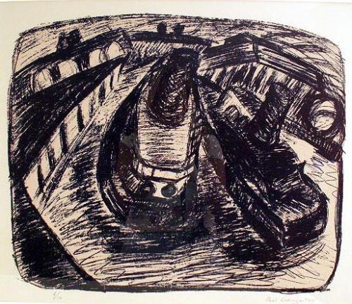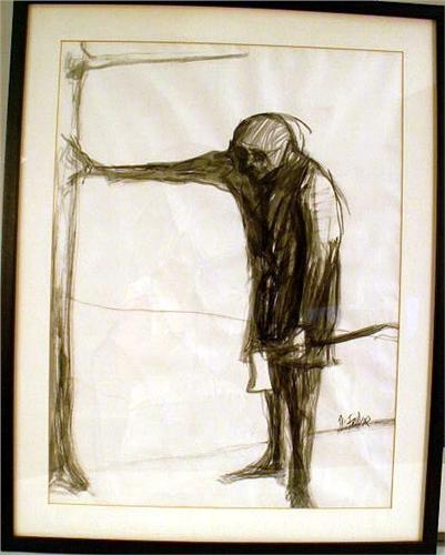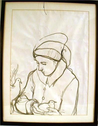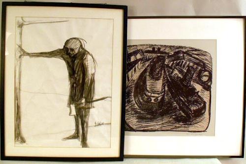 Depicting boats in New York Harbor, bears signature lr. 18"h x 20 3/4"w. Together with a framed double drawing, each of figures, signed illegibly. 24"h x 17 1/4"w. 2 pieces.
