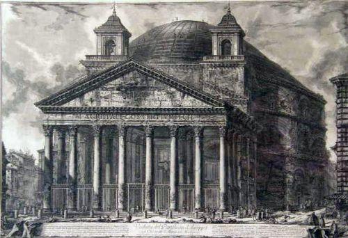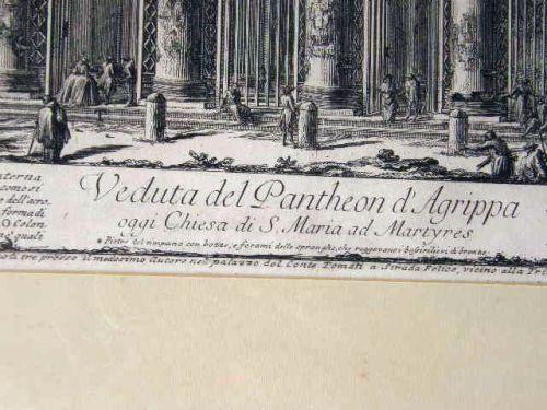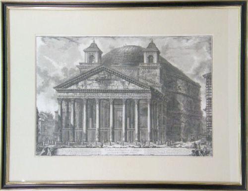 Veduta del Pantheon d`Agrippa Oggi Chiesa di S. Maua ad Martyre 18c. Giovanni Battista Piranesi (Italian 1720-1778). 18 1/2"h x 27"w Foxing to matting, not examined out of frame.