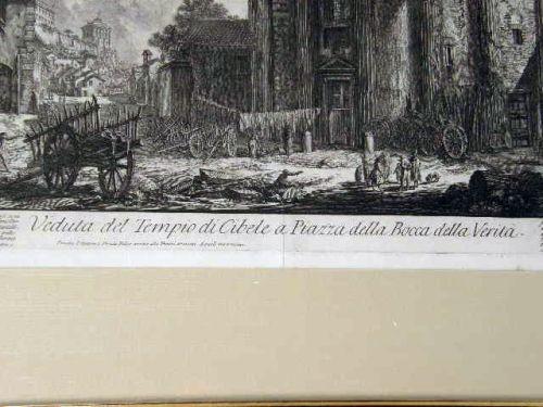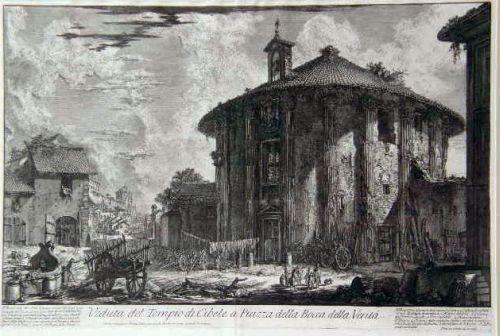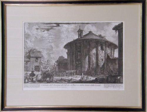 Veduta del Tempio di Cibele a Piazza della Bocca della Verita Giovanni Battista Piranesi (Italian 1720-1778). 16"h x 24"w Fold in center, ripple along matting, not examined out of frame.