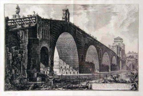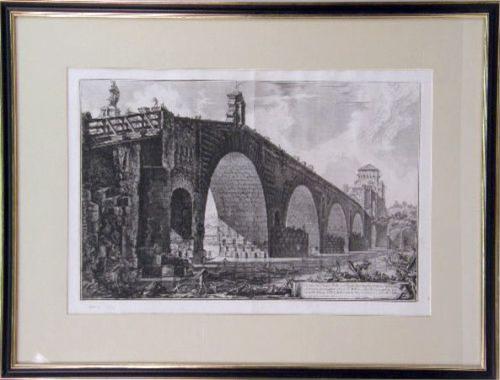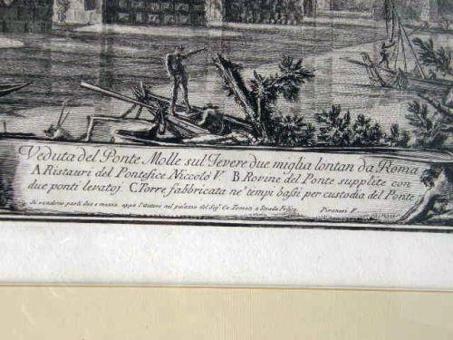 Veduta del Ponto Molle sul Trevere due Miglia Lontan da Roma Giovanni Battista Piranesi (Italian 1720-1778), pencil numbered l.l. 19"h x 28"w Fold in center, not examined out of frame.