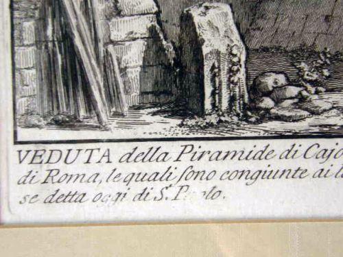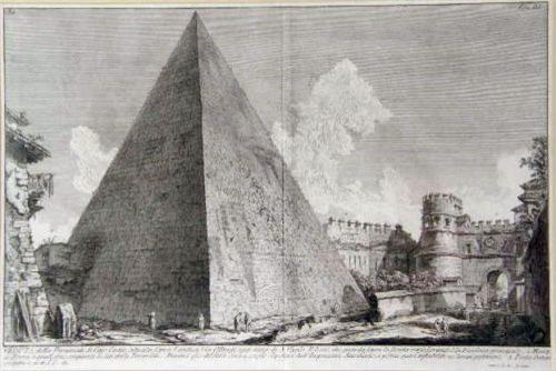 Veduta della Piramide di Caio Cestio Giovanni Battista Piranesi (Italian 1720-1778). 15 3/4"h x 23 1/2"w Fold in center, not examined out of frame.