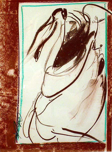 A FRAMED POLYCHROME ABSTRACT CRAYON ON PAPER