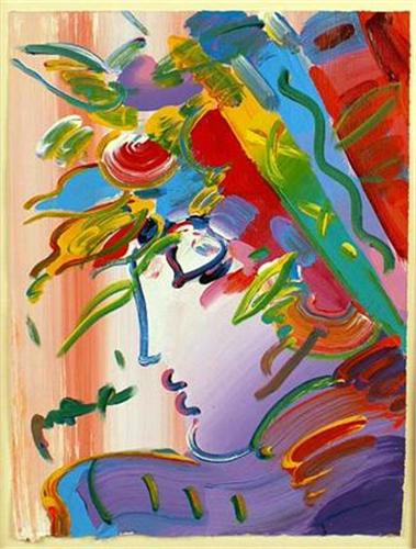 Abstract of a woman`s face, bears signature, l.l., Max, (Peter Max), titled "Profile, Version 1 No. 137". 16"h x 11-1/2"w