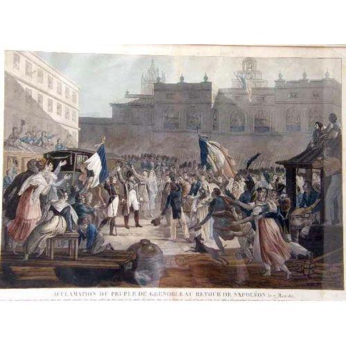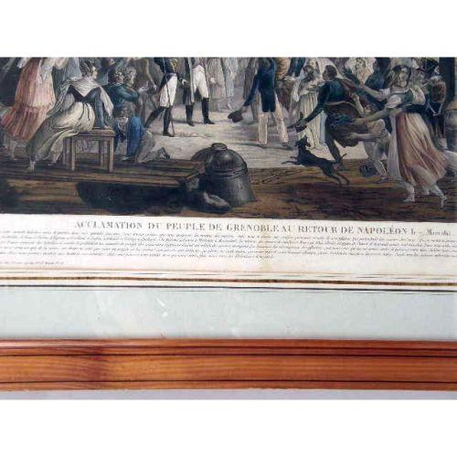 A FRAMED POLYCHROME PRINT<BR><BR>Depicting "Acclamation du Peuple de Grenoble Au Retour de Napoleon, le 7 Mars 1815," 14-1/2"h x 18-3/4"w