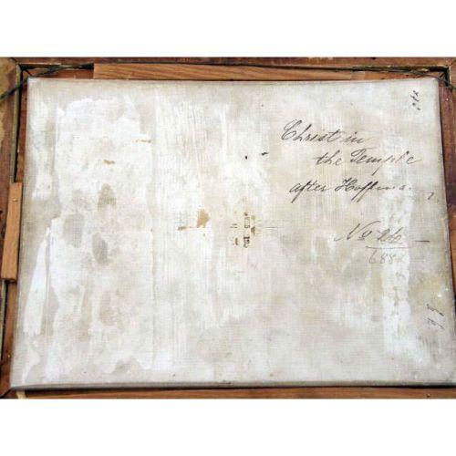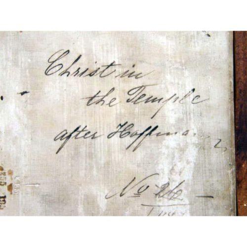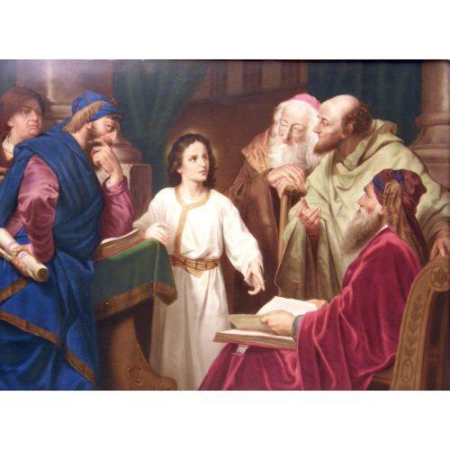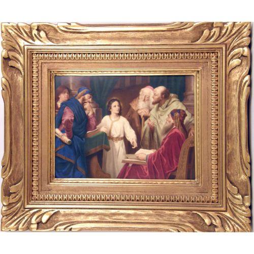 A FRAMED PORCELAIN PLAQUE<BR><BR>Depicting Christ in the Temple, after Henrich Hoffmann, marked KPM #225, 7"h x 10"w