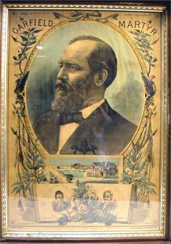 A FRAMED POSTER COMMEMORATING THE DEATH OF PRESIDENT GARFIELD-MARTYR; Discolored 33"h x 22"w