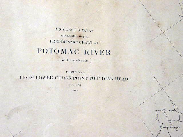A.D. Bache, Supdt., sheet #3, "From Lower Cedar Point to Indian Head". 26"h x 34"w Losses, staining, foxing.