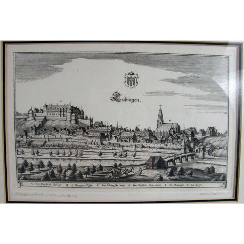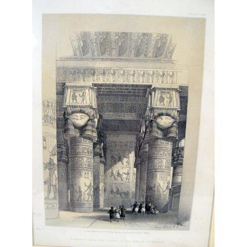 A FRAMED PRINT<BR><BR>Bears signature David Roberts, R.A., titled "View from Under the Portico of the Temple of Dendera," Together with a German print and a drawing depicting a street scene. 3 pieces
