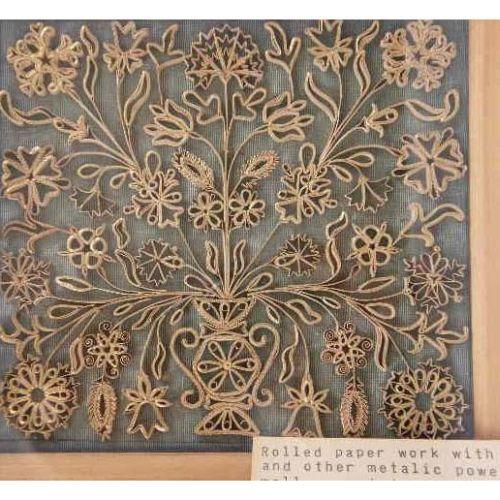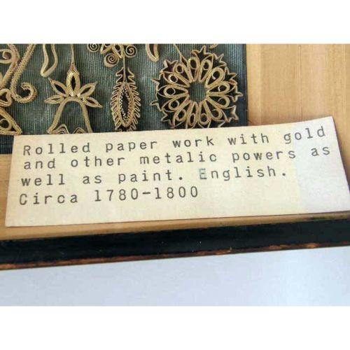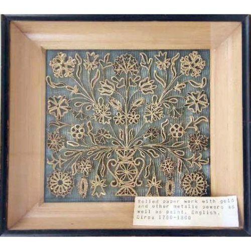 A FRAMED ROLLED PAPER WORK<BR><BR>with gold and other metallic powders as well as paint, possibly late 18th century, English, 9-1/4"h x 10-1/4"w