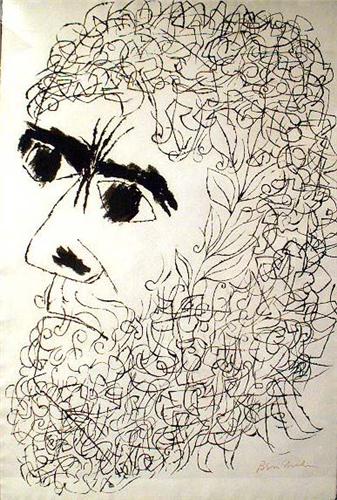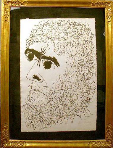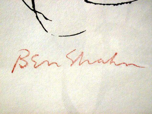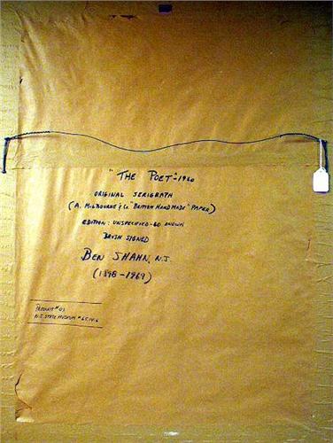 Depicting the head of a man in profile, brush signed lr Ben Shahn, titled "The Poet", 1960, the verso inscribed "Prescott #43, N.J. State Museum #65.14.6, Edition: Unspecified-60 known". 40 1/2"h x 27"w.