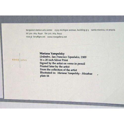 A FRAMED SILVER PRINT<BR><BR>Titled "Urdimbre, San Francisco Tepeoluclco, 1989," by Mariana Yampolsky, 13"h x 17-3/4"w