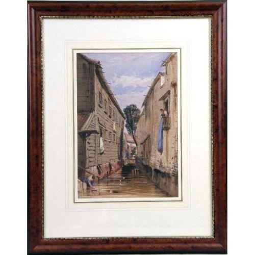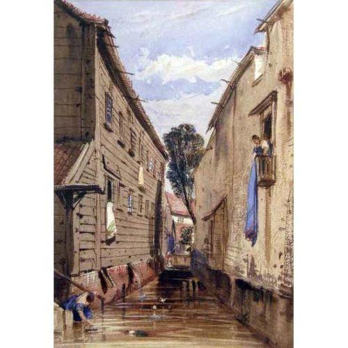 A FRAMED WATERCOLOR<BR><BR>Of peasants in a canal scene, bears monogram l.l., 14-1/4"h x 10"w