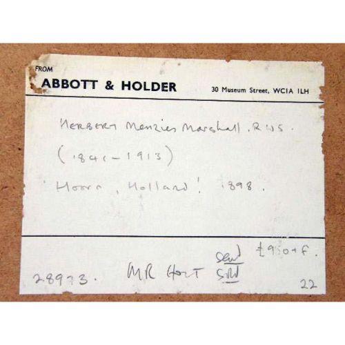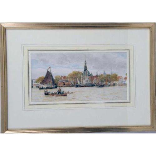 A FRAMED WATERCOLOR<BR><BR>Depicting Hoorn, Holland, bears signature l.r. "H.M. Marshall/May 31, 1898/Hoorn" similarly inscribed on the verso. 7"h x 14"w Provenance: Abbott and Holder,