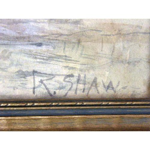 A FRAMED WATERCOLOR<BR><BR>Depicting a church building, bears signature R. Shaw, 14-1/2"h x 22-1/2"w