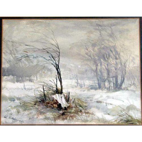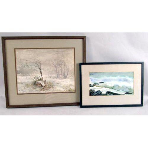 A FRAMED WATERCOLOR<BR><BR>Titled "January Day," bears signature W. Schneirer(?). 10-1/4"h x 13-1/2"w.Together with a framed watercolor of a landscape, bears signature "Janet Hayes Austin" 5-1/2"h x 10-1/2"w