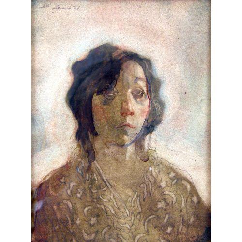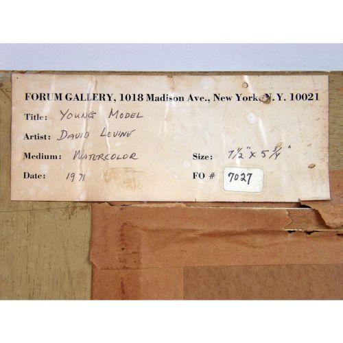 A FRAMED WATERCOLOR<BR><BR>Young Model, bears signature, ul, David Levine, 1971, 7-1/2"h x 5-3/4"w