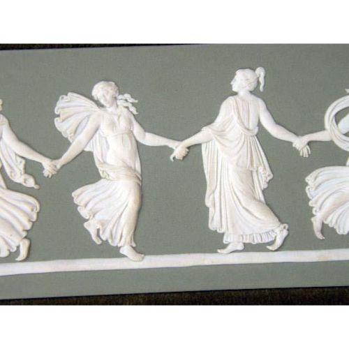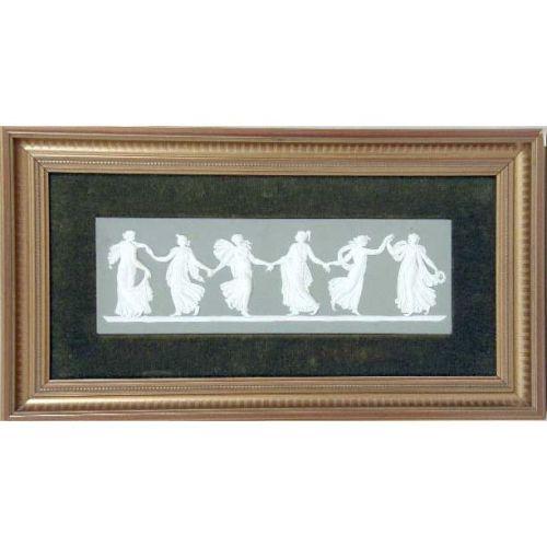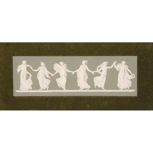 A FRAMED WEDGWOOD "DANCING HOURS" GREEN JASPERWARE PLAQUE<BR><BR>8-3/4" x2-7/8"