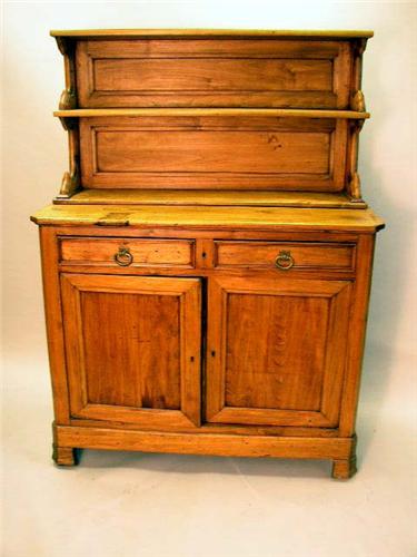 A FRENCH PROVINCIAL FRUITWOOD TWO PIECE HUTCH CABINET; 47" x 21" x 63"