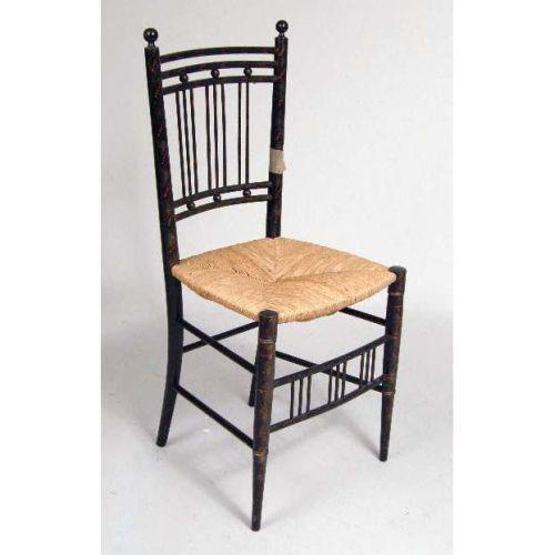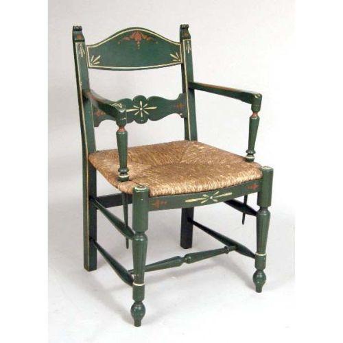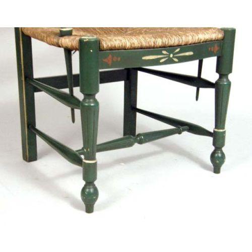A FRENCH PROVINCIAL STYLE GREEN-PAINTED RUSH-SEATED ARMCHAIR<BR><BR>Together with a Regency style rush-seated side chair. 2 pieces