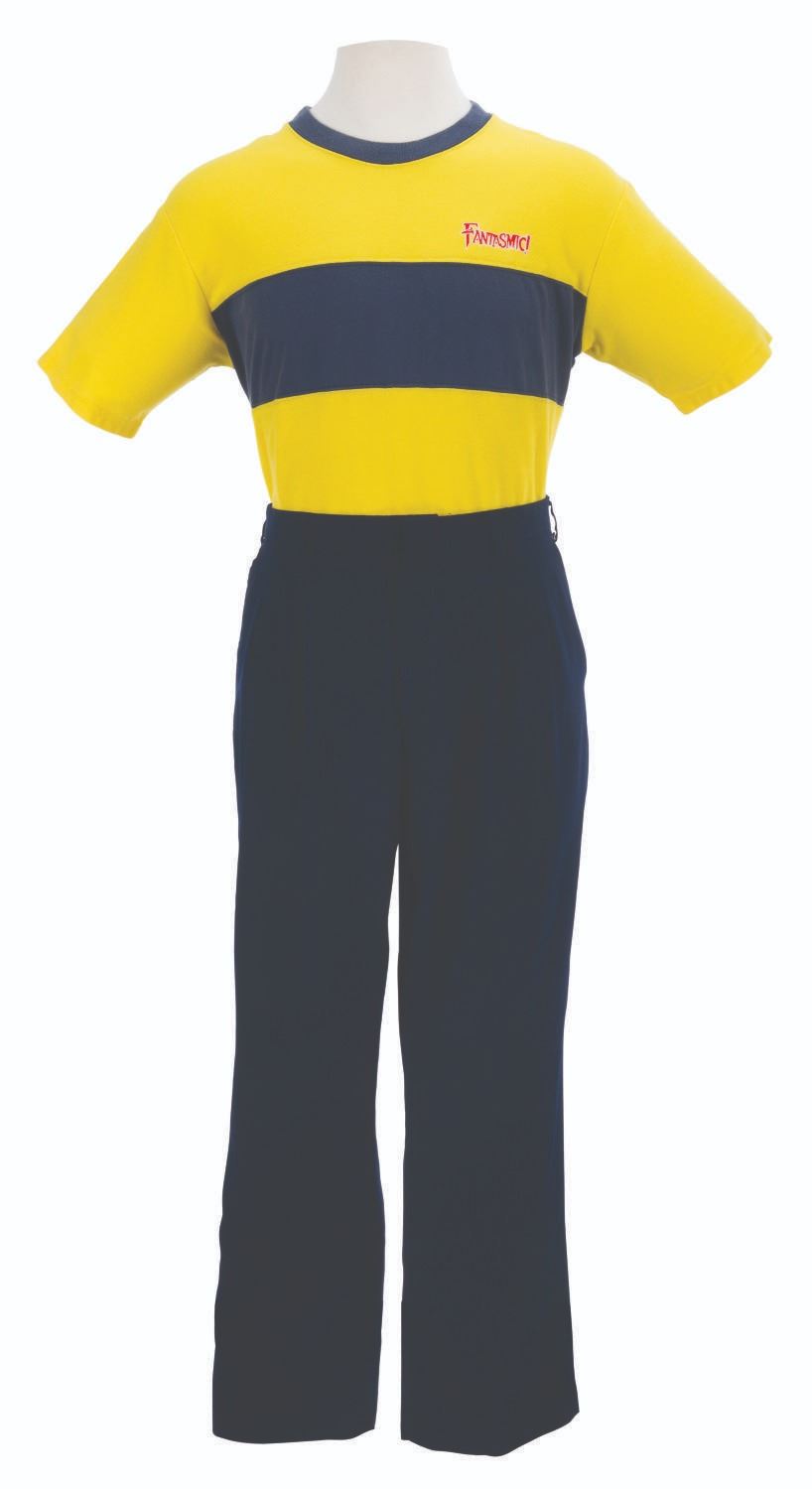 (Disneyland, 2000) A costume shirt and pants worn by Cast Members working at the nighttime spectacular Fantasmic! The shirt is a size XL, and the pants are a size 40-33. Both garments are in very good condition with wear from Park use, and the shirt retains the Disneyland Wardrobe Department label.