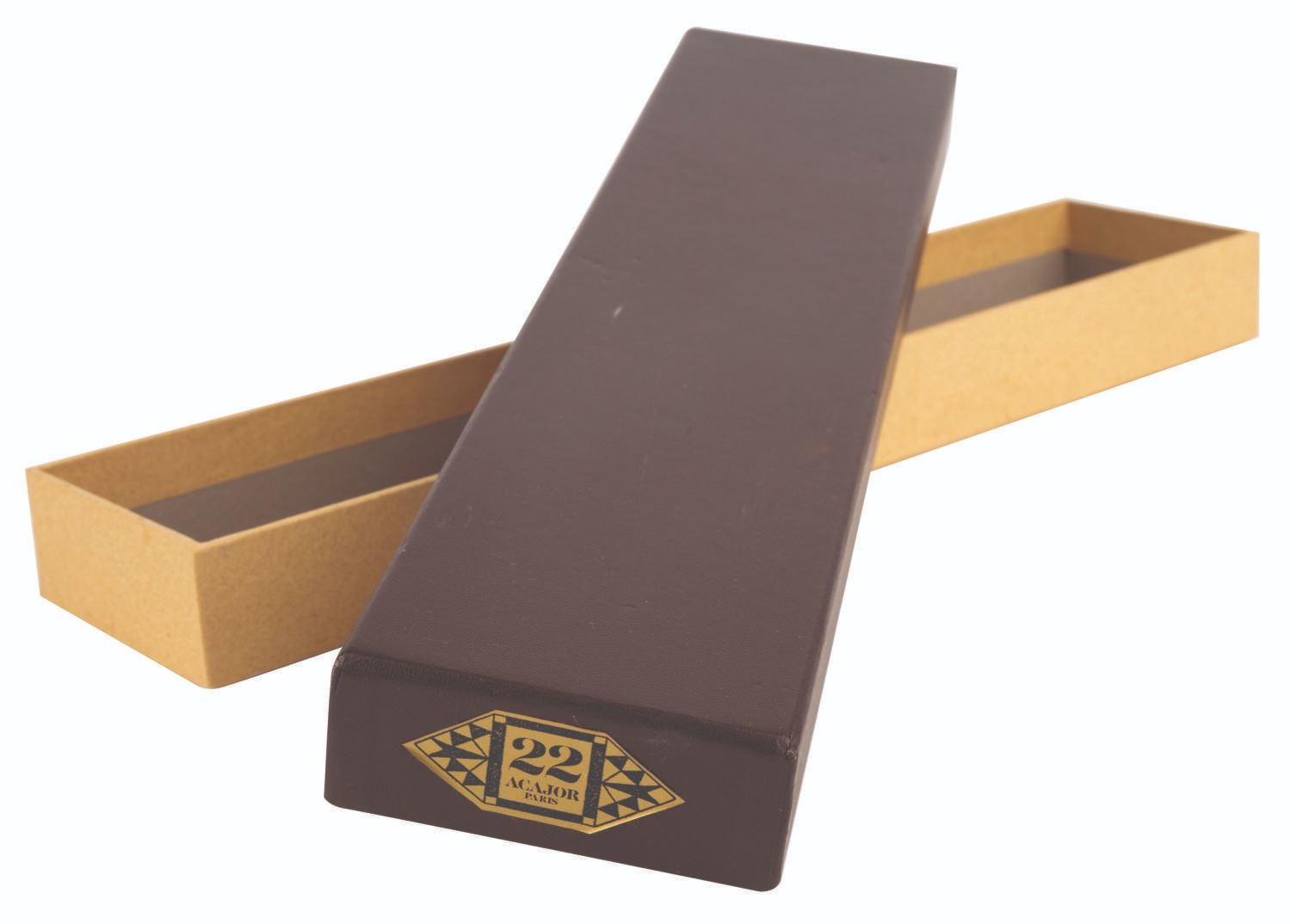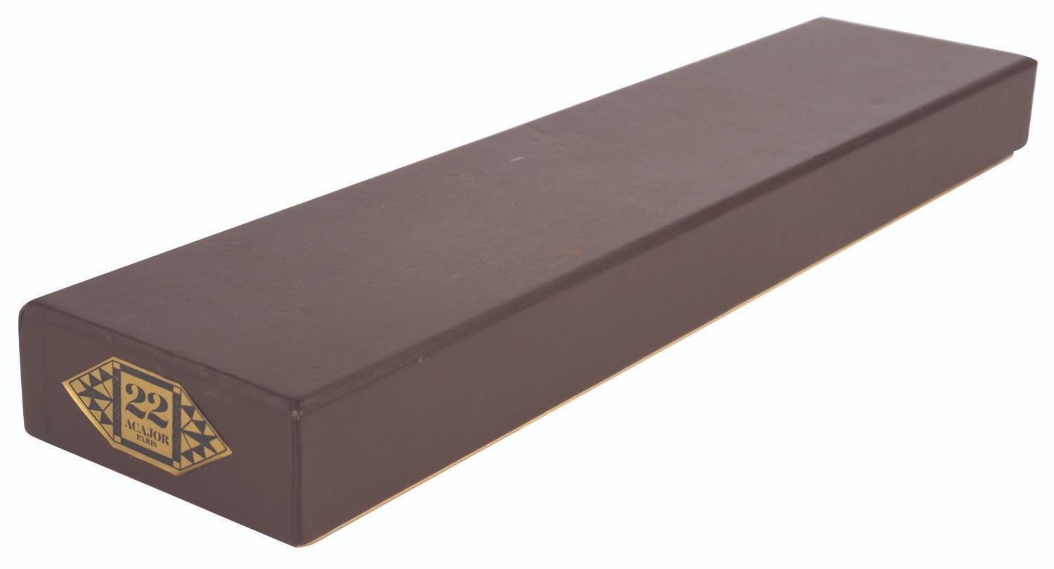 (Warner Bros., 2018) A prop wand box from the production of “Fantastic Beasts: The Crimes of Grindelwald.” Measuring 14.5” x 3.25” x 1.5” tall, the wand box is in very good production-used condition with light dents to the top cover.