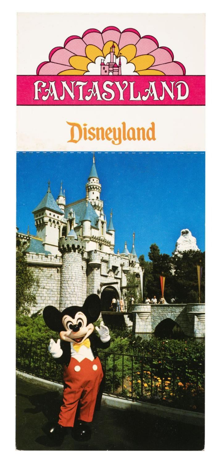 (Disneyland, 1970s-80s) A Fantasyland postcard book featuring 8 cards from It’s a Small World, Storybook Land Canal Boats, and more. Measuring 3.5” x 8”, the postcard book is in good condition with scratches and wear.