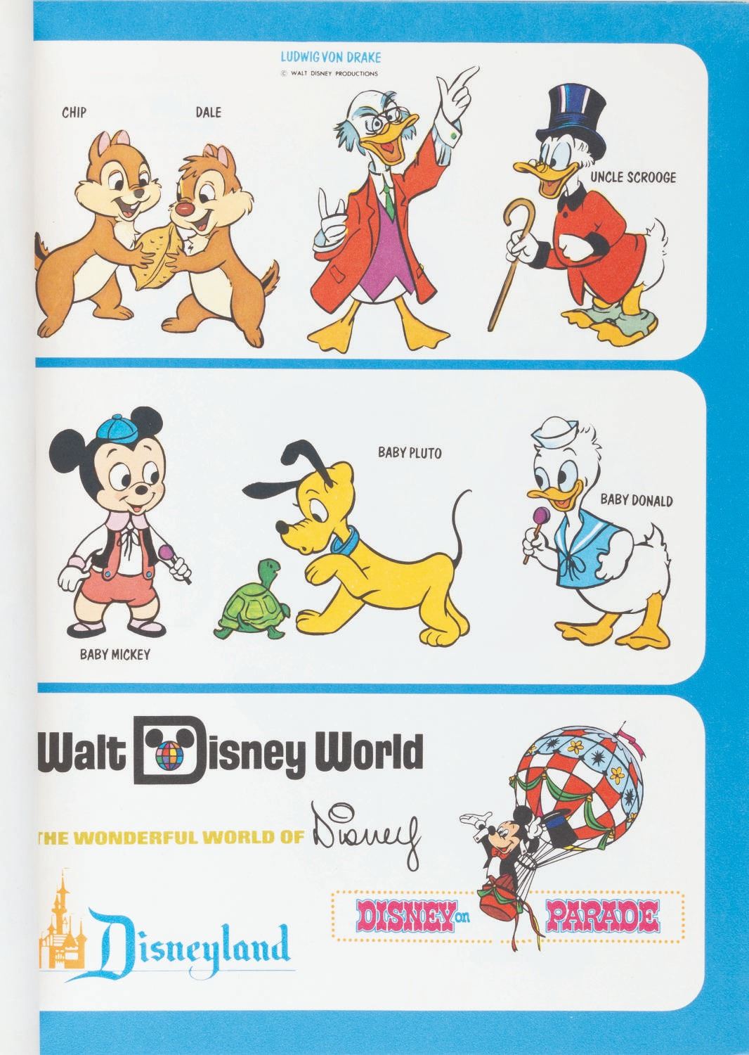 (Disney, 1970s) A favourite characters from Walt Disney Studios guide featuring 12 pages of characters and title treatments for licensee merchandise. Measuring 8.5" x 11", the guide is in very good condition with light wear from handling.
