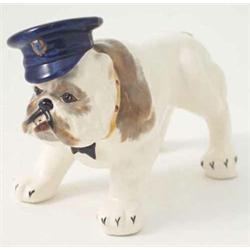 A Fielding's Crown Devon Bulldog, standing four-square smoking cigar and wearing naval officer's cap, collar and bow tie, cigar re-attached, 6.5in. £150-250