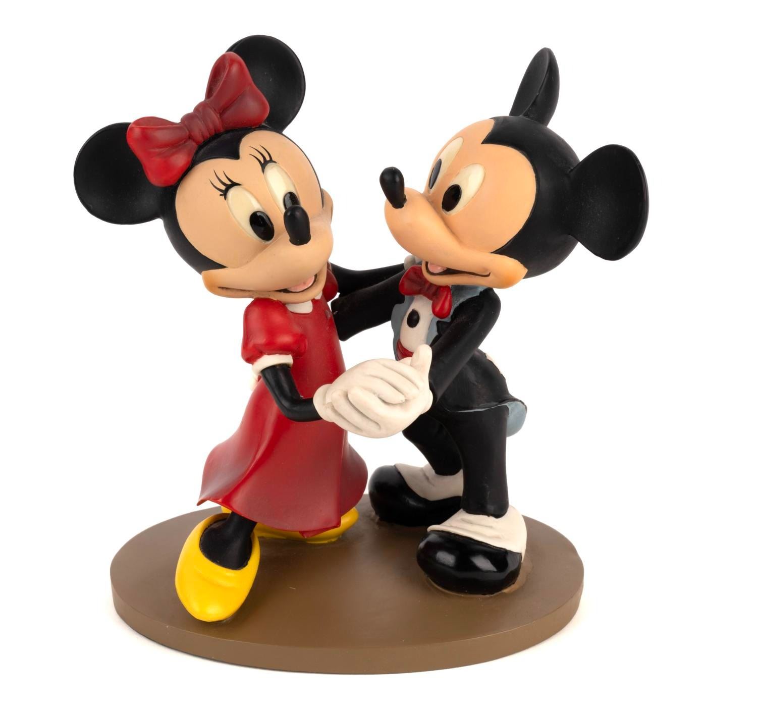 (Disney, 1990s) A figure of Mickey and Minnie Mouse dancing. Measuring 7.25" x 4.25" x 7.25" high, the resin piece is in very good condition with slight wear.