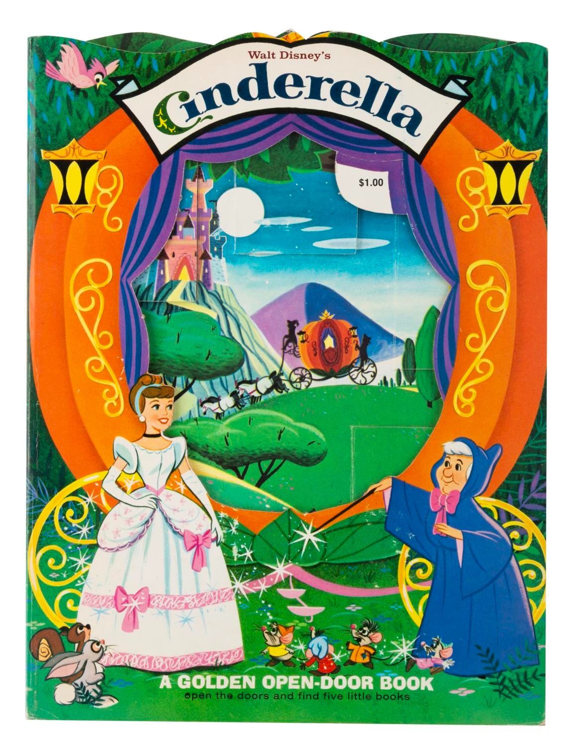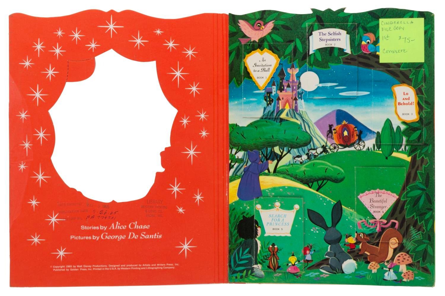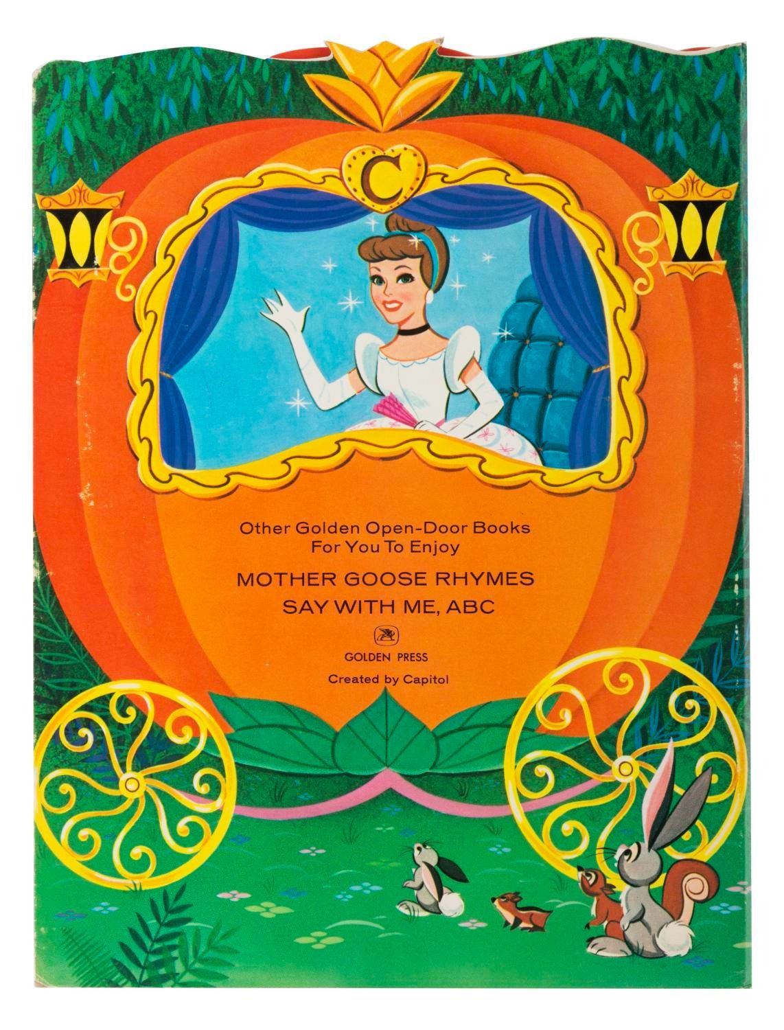 (Golden Press, 1965) A Cinderella open door book. The 9.75" x 12" cover opens to reveal five 3.5" x 2.25" books inside. This copy is marked and stamped inside as a Western Press file copy sample, dated May 5, 1965. The book is in very good condition with very light wear to the outer cover.