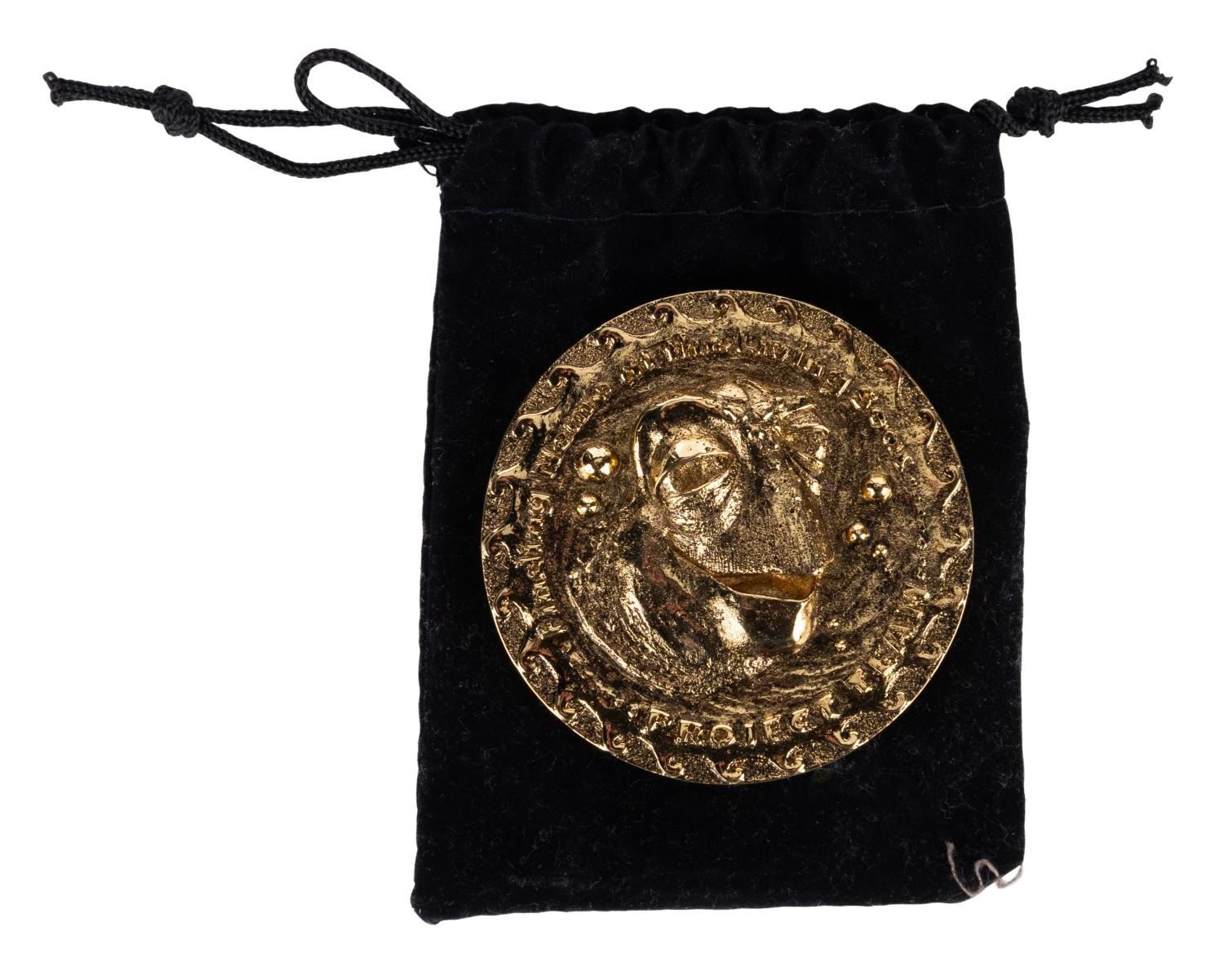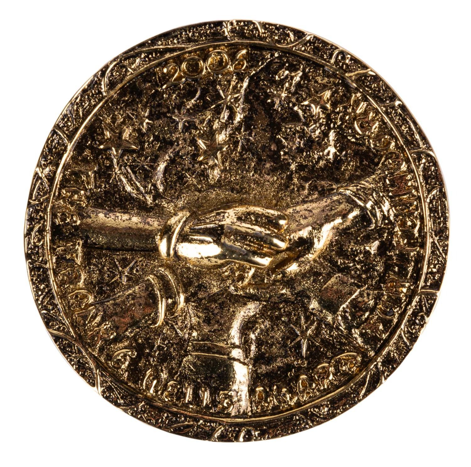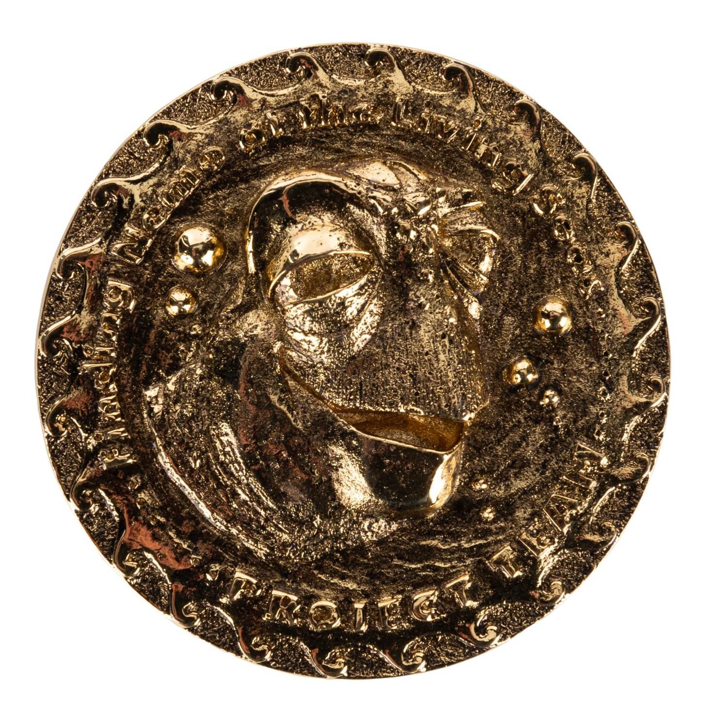 (Walt Disney World, 2006) A rare Frank G. Wells Award for Teamwork coin given to team members who worked on Finding Nemo at the Living Seas in Epcot. Measuring 2.5” in diameter, the gold coin bearing Crush’s likeness is in very good condition with a scuff on the edge.