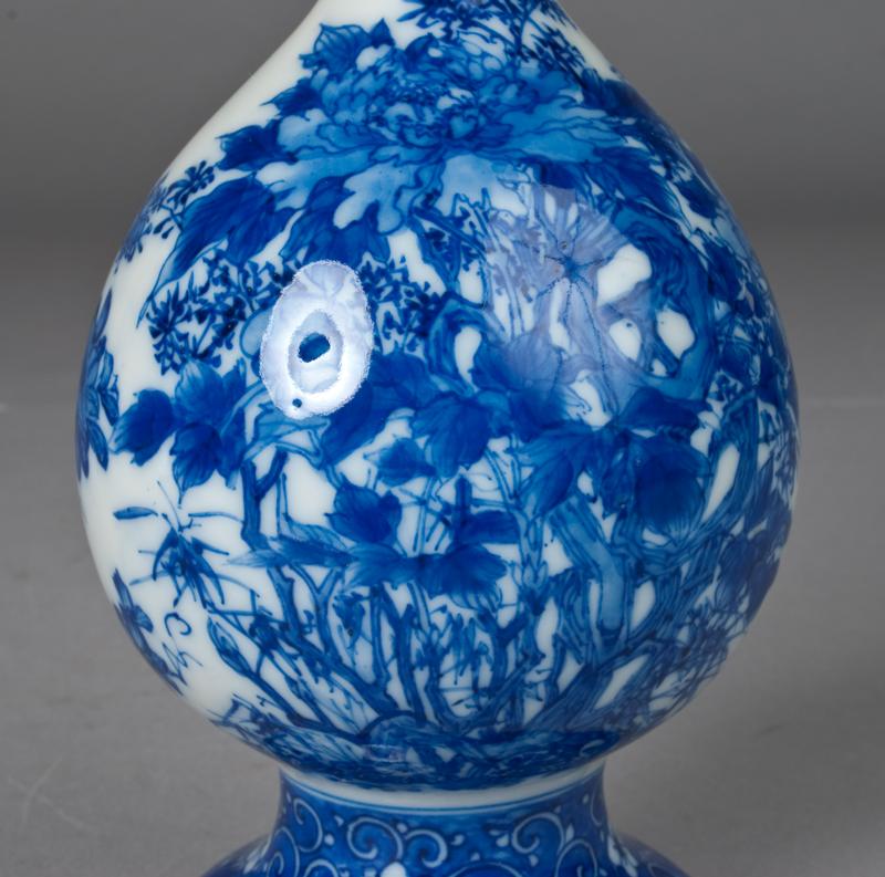 Profusely decorated with foliage against a white ground, with dragon head handles, and very well done, 9.75"H circa 20th century.